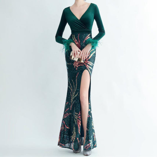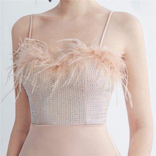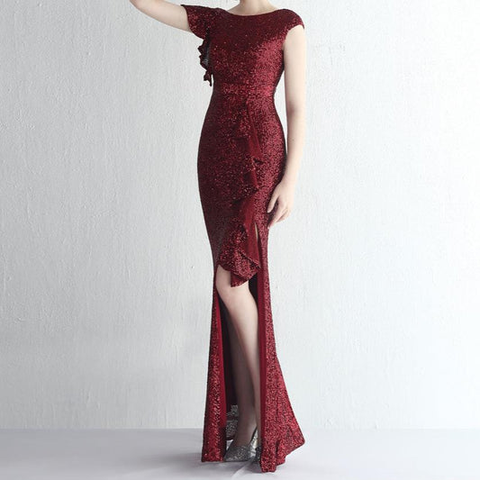Elegantes Bandage-Maxikleid mit Diamanten – Bodenlang & Quadratkragen