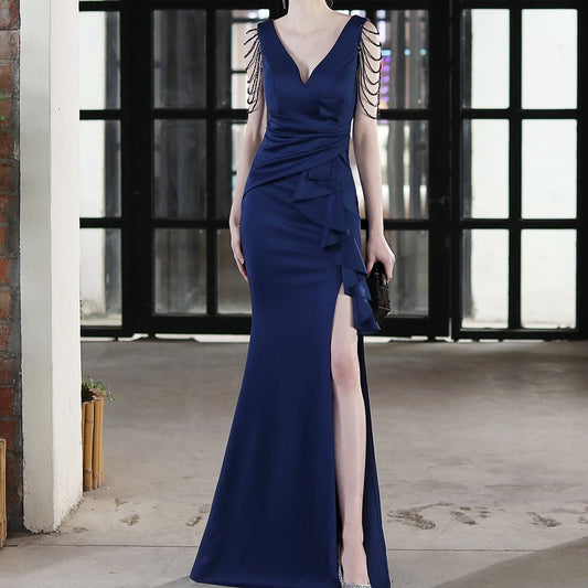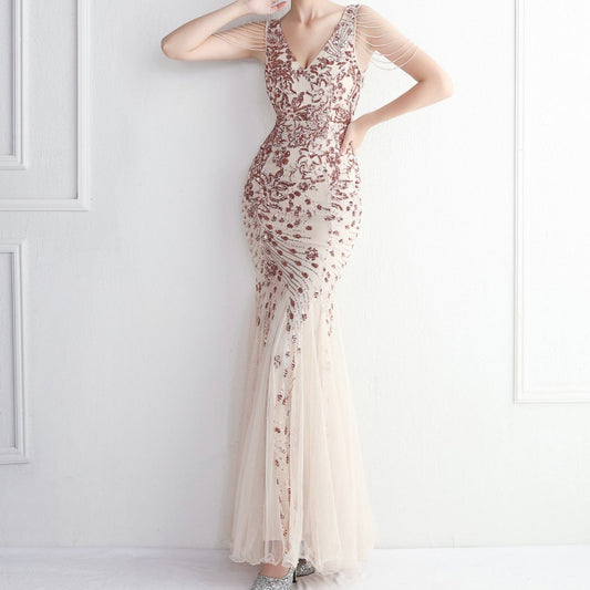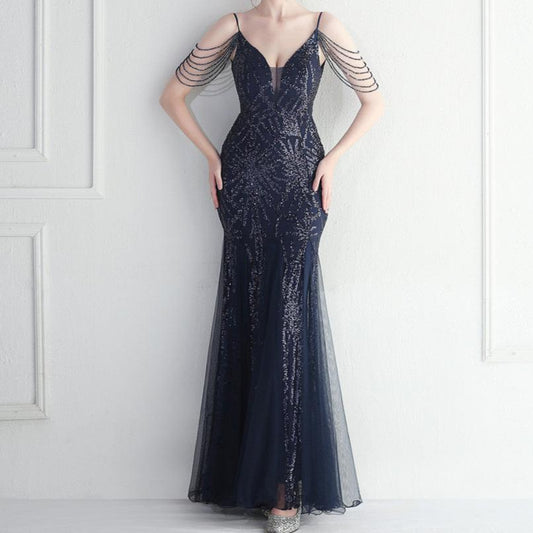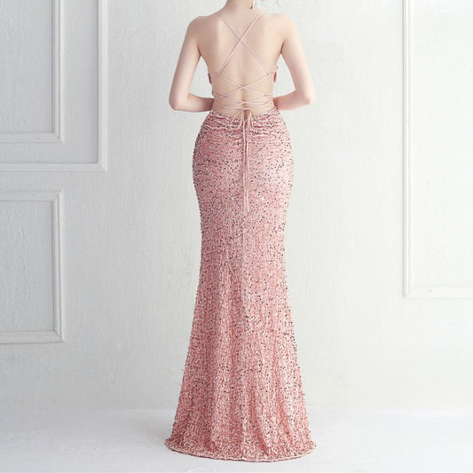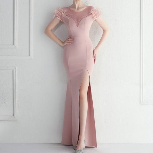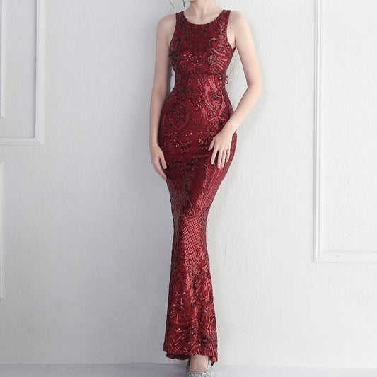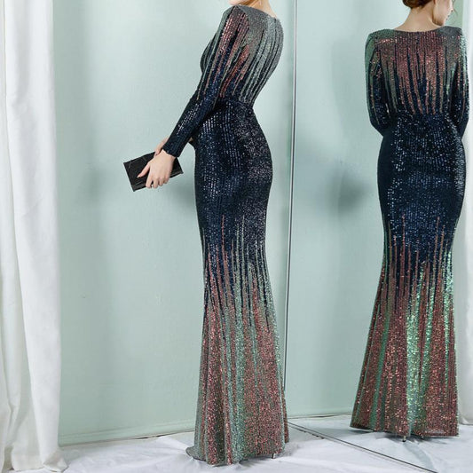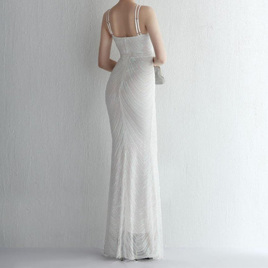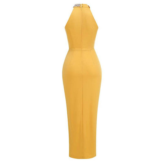 Elegantes Bandage-Maxikleid mit Diamanten – Bodenlang & Quadratkragen