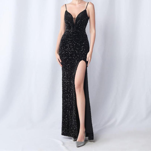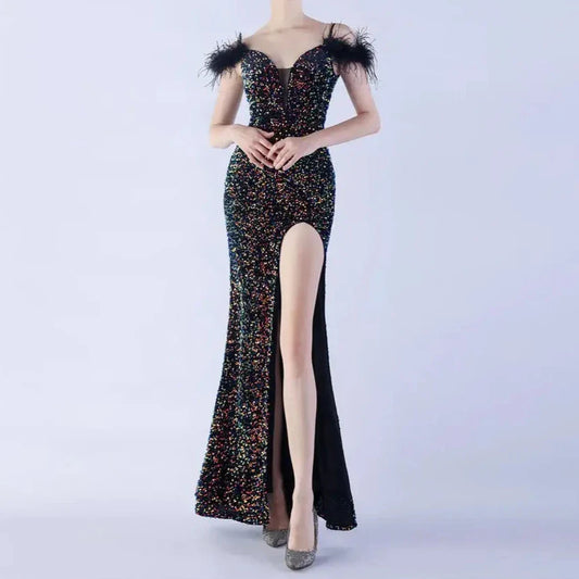 Elegantes Bandage-Maxikleid mit Diamanten – Bodenlang & Quadratkragen