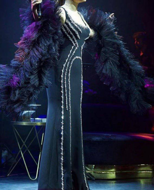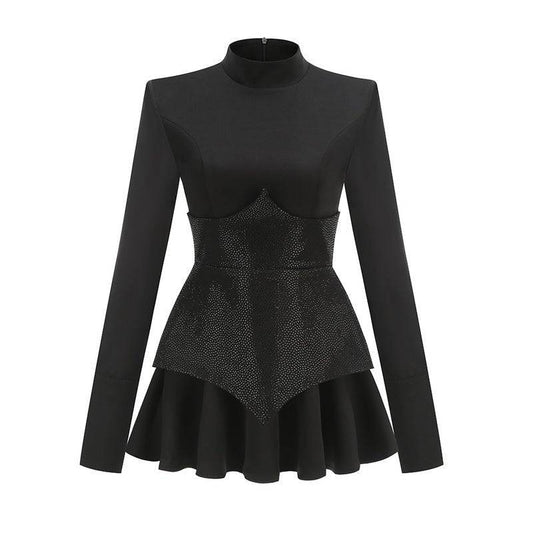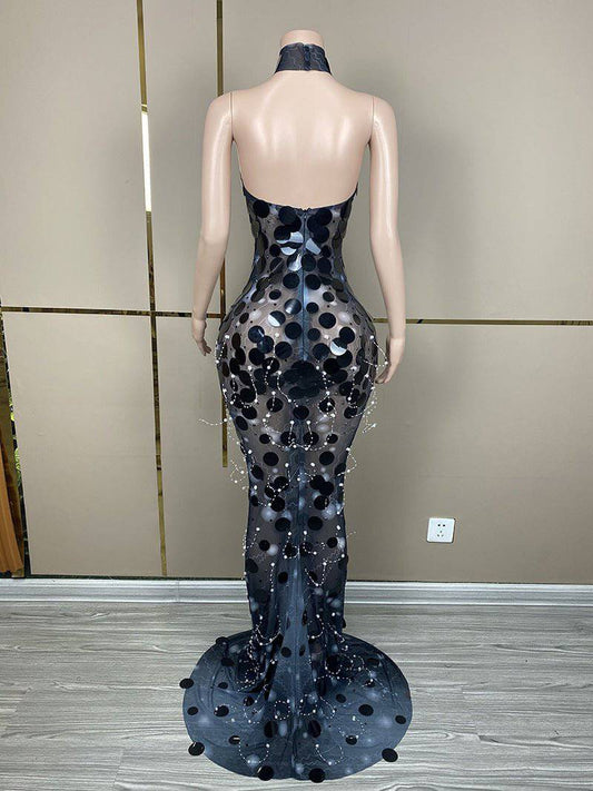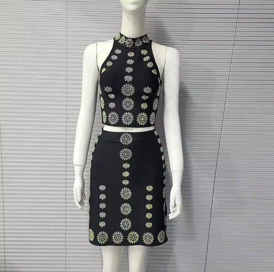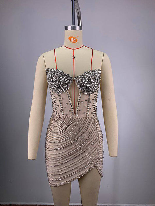 Elegantes Bandage-Maxikleid mit Diamanten – Bodenlang & Quadratkragen