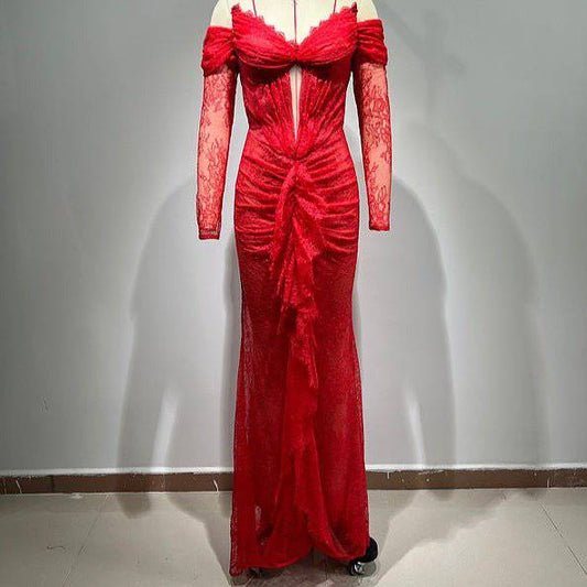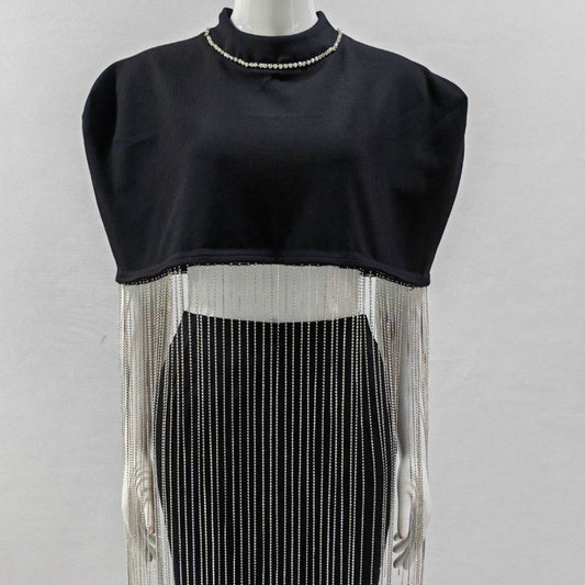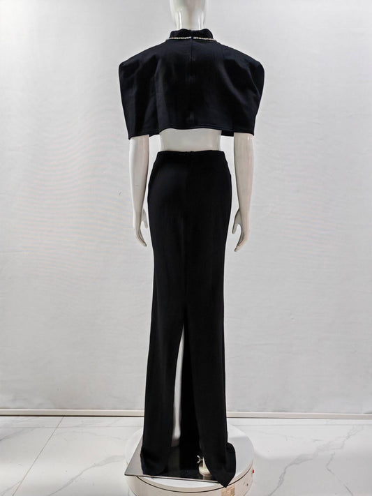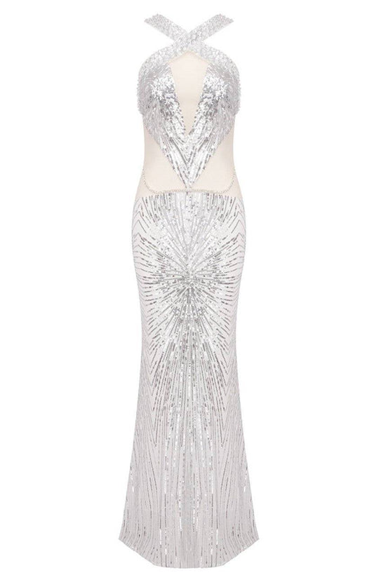Elegantes Bandage-Maxikleid mit Diamanten – Bodenlang & Quadratkragen