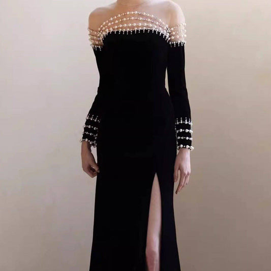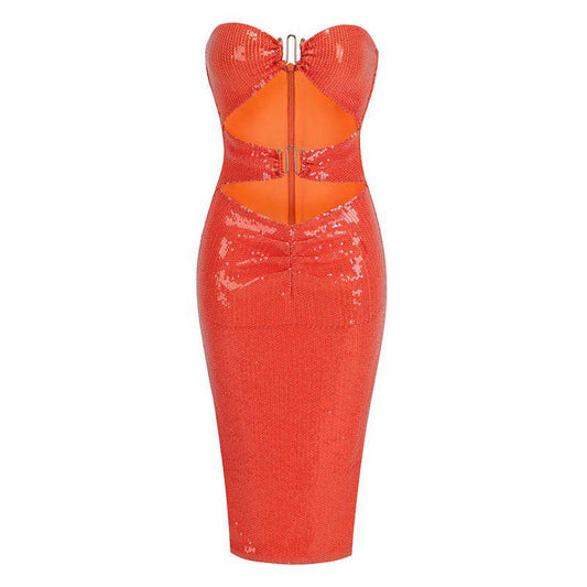 Elegantes Bandage-Maxikleid mit Diamanten – Bodenlang & Quadratkragen