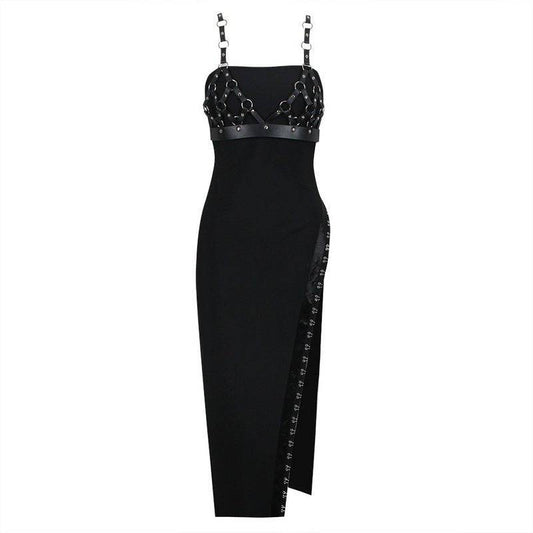 Elegantes Bandage-Maxikleid mit Diamanten – Bodenlang & Quadratkragen