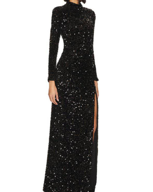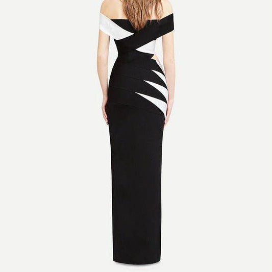 Elegantes Bandage-Maxikleid mit Diamanten – Bodenlang & Quadratkragen
