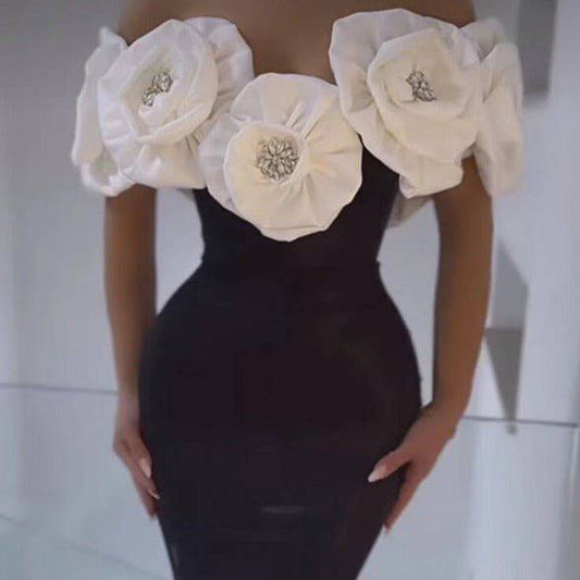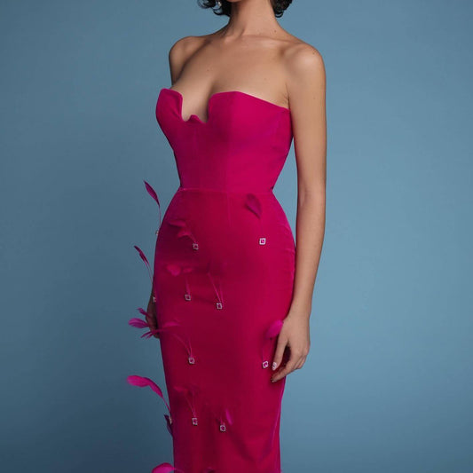 Belle Trägerloses Maxikleid mit Blumenverzierung