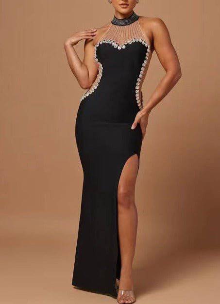Ava gerafftes schulterfreies Maxikleid mit Schlitz