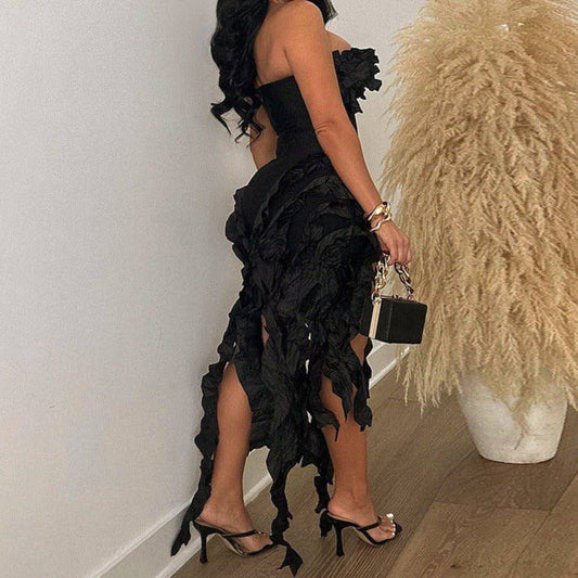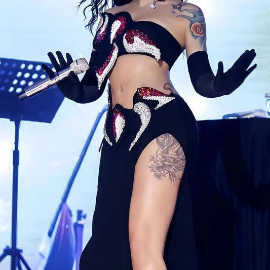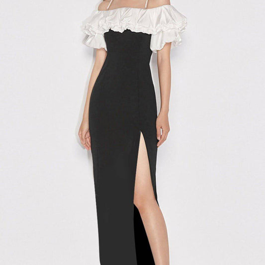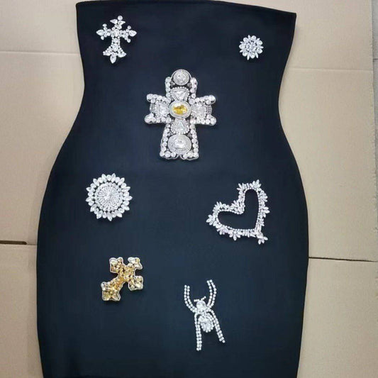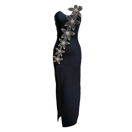 Elegantes Bandage-Maxikleid mit Diamanten – Bodenlang & Quadratkragen