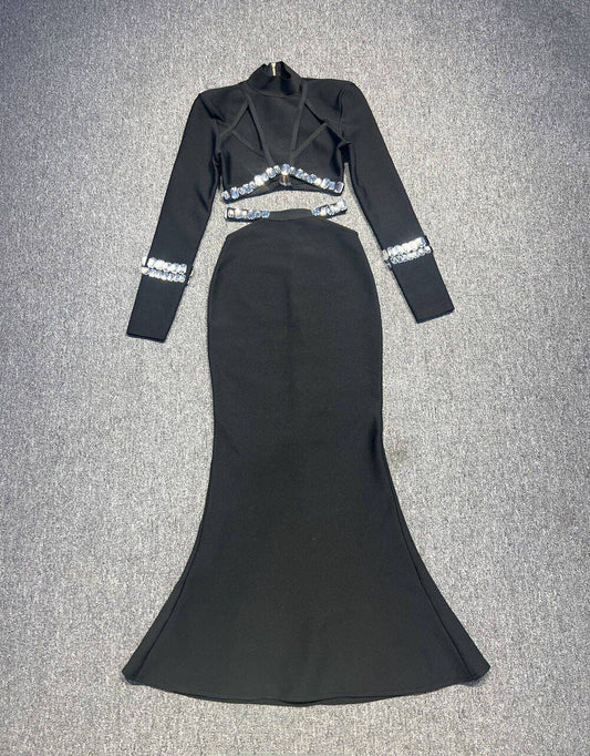 Elegantes Bandage-Maxikleid mit Diamanten – Bodenlang & Quadratkragen