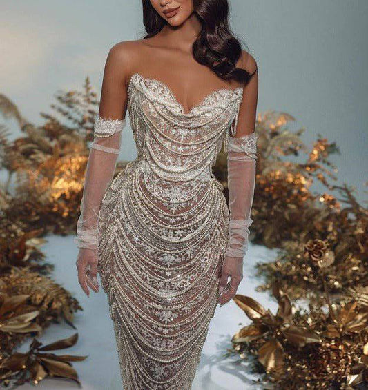 Elegantes Bandage-Maxikleid mit Diamanten – Bodenlang & Quadratkragen