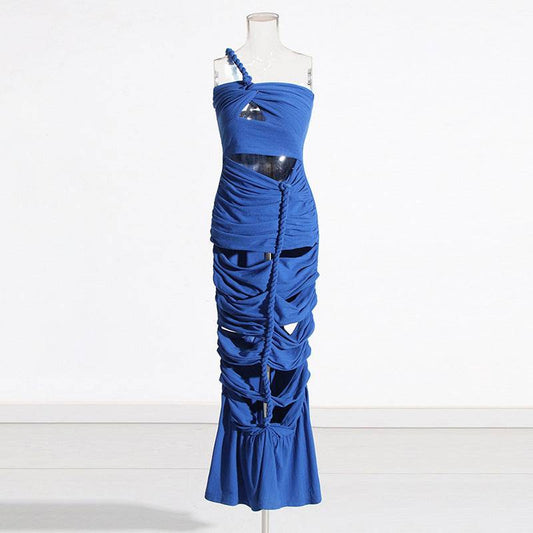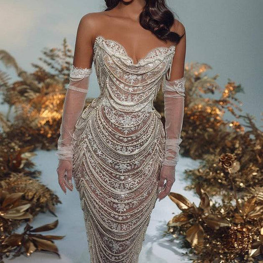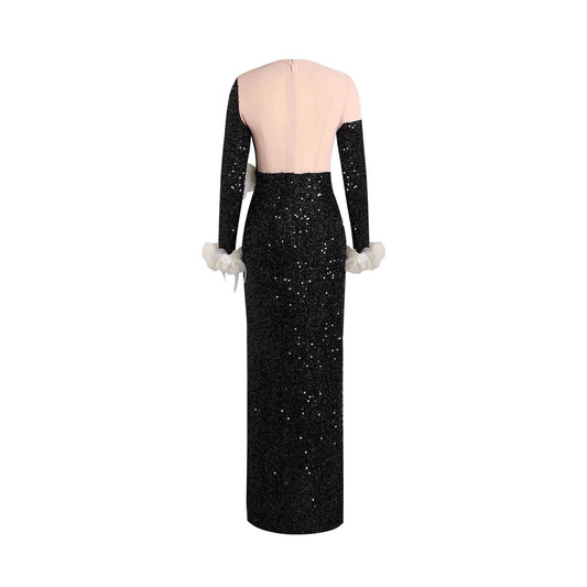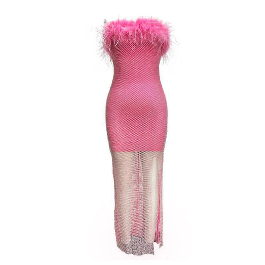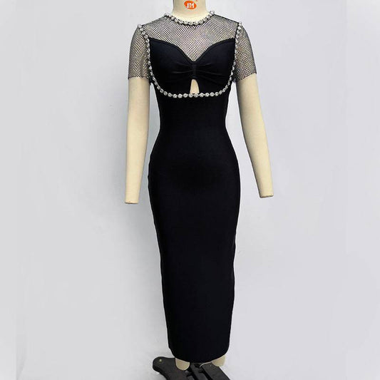Elegantes Bandage-Maxikleid mit Diamanten – Bodenlang & Quadratkragen