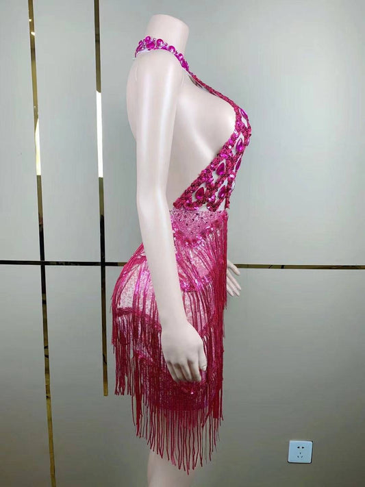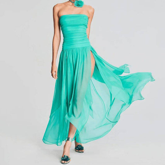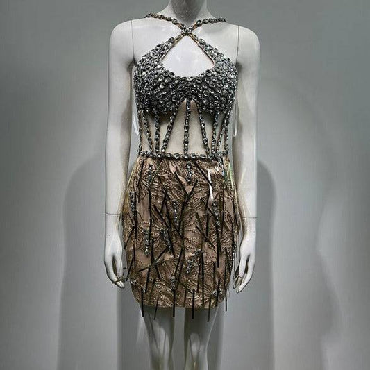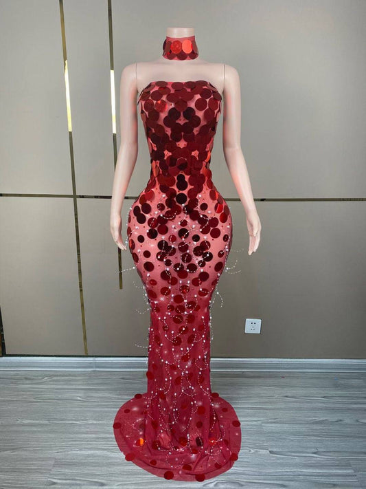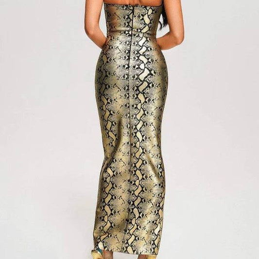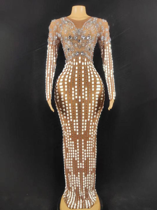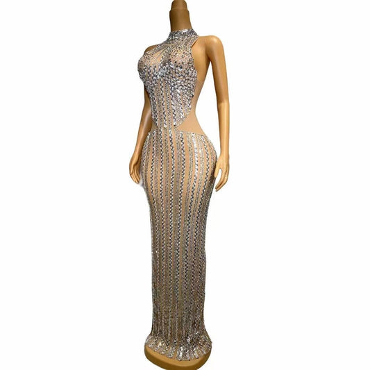 Elegantes Bandage-Maxikleid mit Diamanten – Bodenlang & Quadratkragen