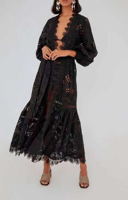 Dakota Besticktes Ösenband Midikleid mit Gürtel und Spitze