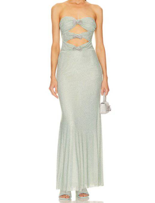 Danica Trägerloses ärmelloses Perlenketten-Maxikleid