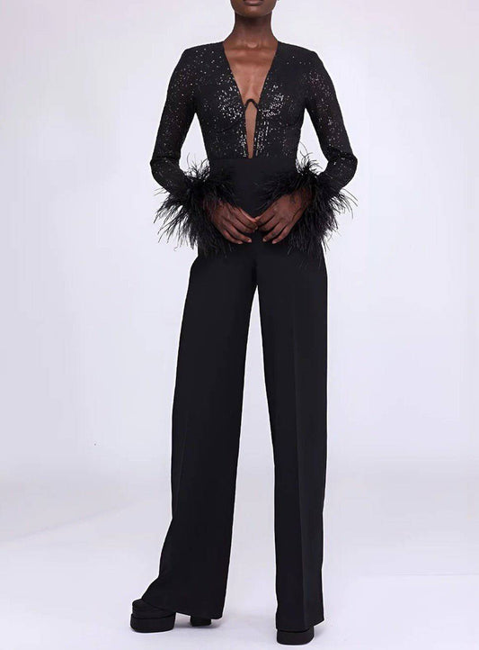 Laura One geknöpfter Strass-Blazer & Schlaghosen-Set