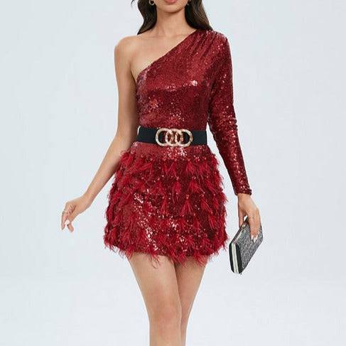 Shealynn Ein-Schulter-Pailletten-Minikleid