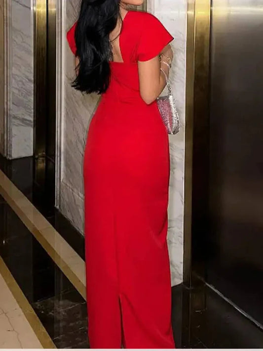 Elegantes Bandage-Maxikleid mit Diamanten – Bodenlang & Quadratkragen