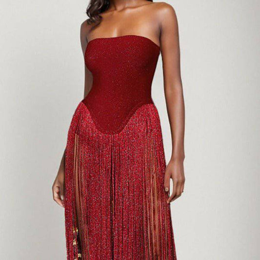 Elanor Schulterfreies Maxikleid Mit Zweifarbigem Seitenschlitz