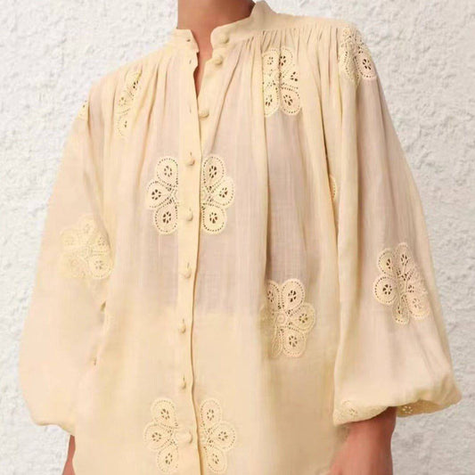 Annie Spitzentop mit Kragen und Schlaghosen Set