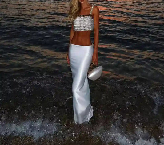 Abby Perlen Perlen Crop Top und Rücken Schlitz Rock Set