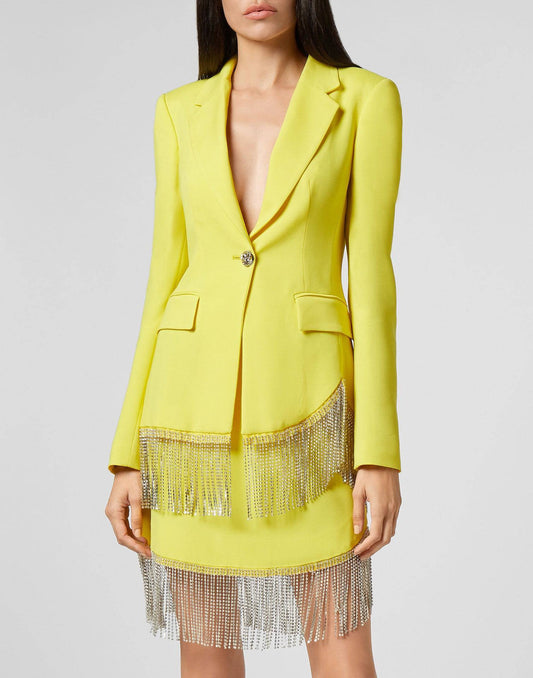 Sophia Vollfarbe Kristall Fransen Blazer Anzug