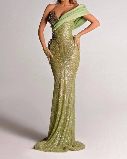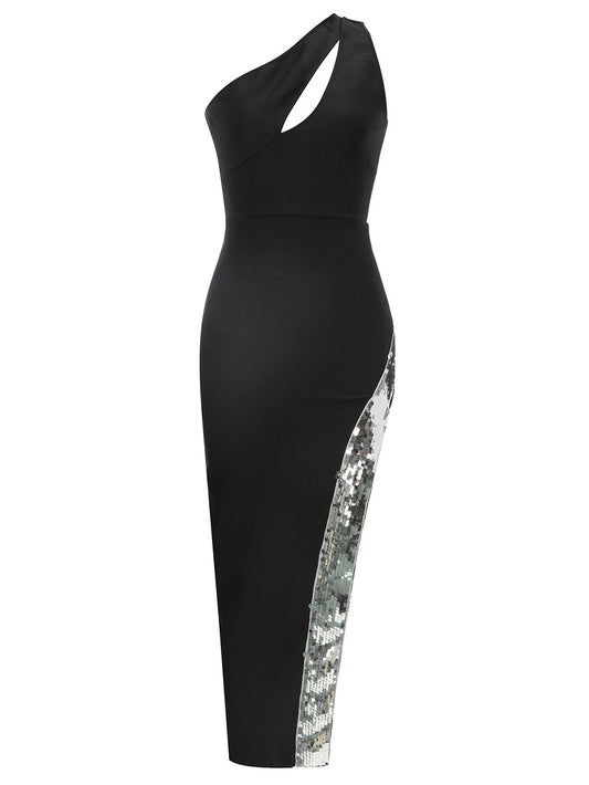 Ginny Ein-Schulter-Kleid mit Federpailletten