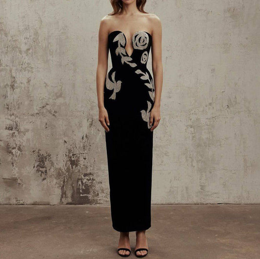 Fredda Trägerloses Maxikleid mit tiefem V-Ausschnitt