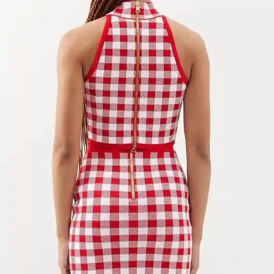 Abigail Ärmelloses Set mit Gingham-Print und verziertem Minirock