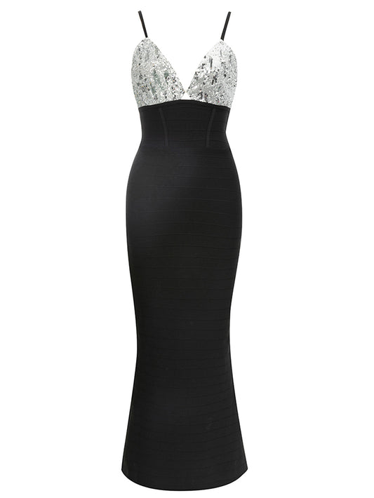 Delilah Bandage-Slipkleid mit Pailletten Patchwork-Kleid