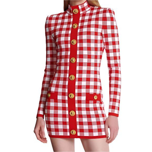Abby Langärmeliges Minikleid mit Gingham-Print und Knopfverzierung