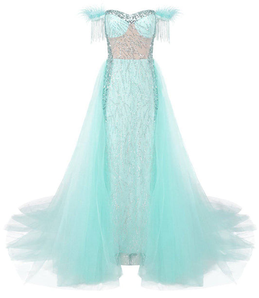 Bonnie Pailletten-Feder schulterfreies Maxikleid