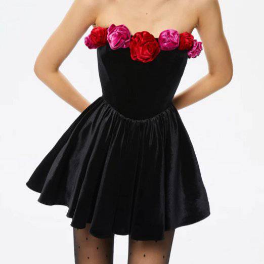 Dotty Floral Trägerloses Drapiertes Minikleid