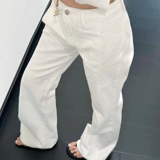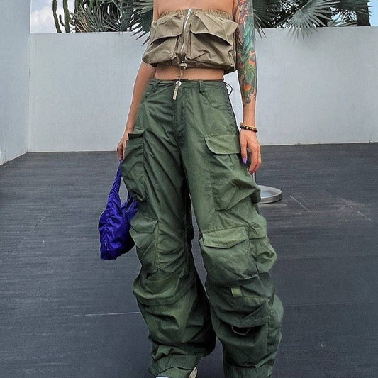 Cambrie Hohe Taille Patchwork-Taschen Cargo-Hose